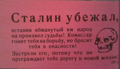 Все знают, что Сталин не оставил Кремль даже когда тот обстреливался немцами и в полку охраны уже были убитые. Однако вот листовка, говорящая что Сталин, дескать сбежал.