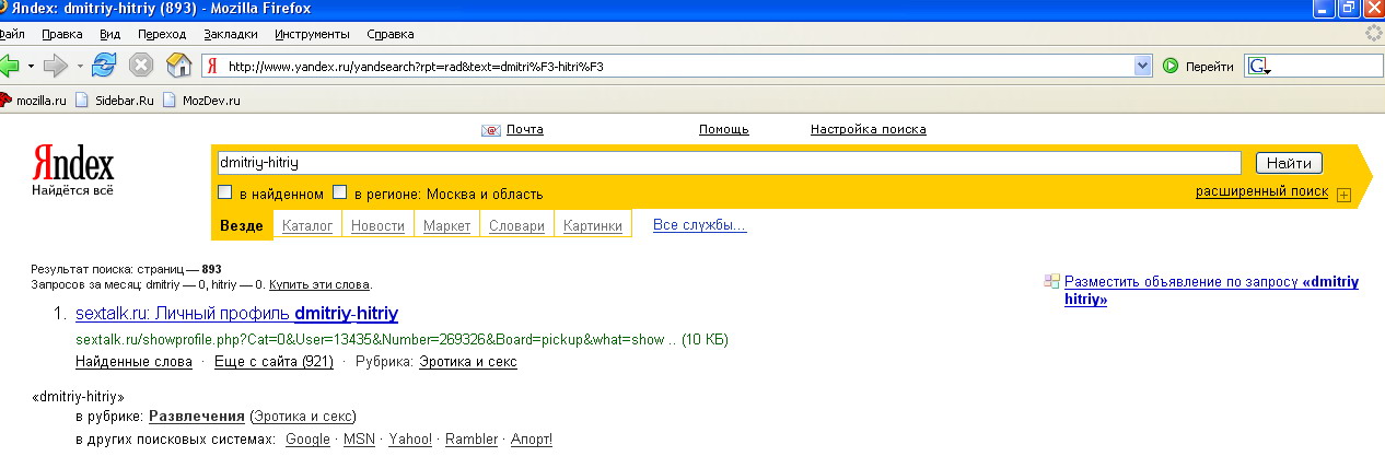 результата к сожалению это не дало... если раньше выдавался мой профиль... то теперь выдается ссылка на мой профиль из текста где меня упоминал другой форумчанин. Чего делать не знаю в общем