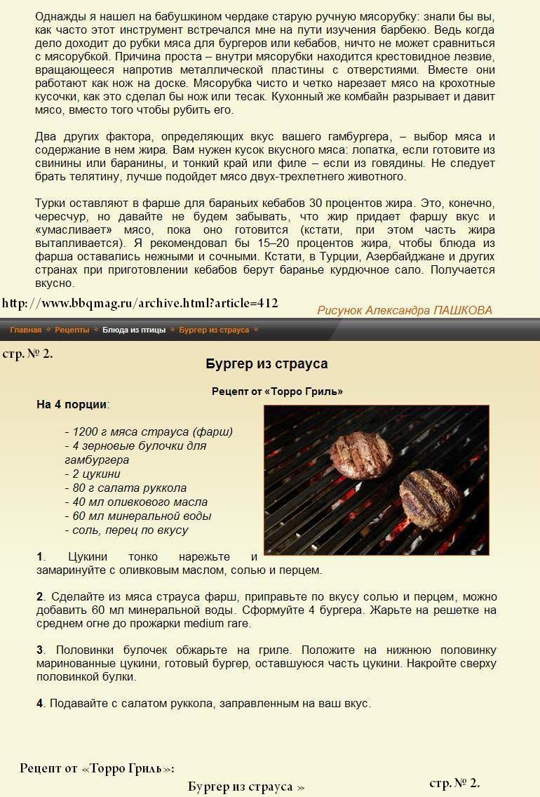 думаете Изя поиском пользоваться не умеет? думаю, что ему нужен свой, опробованный, уникальный рецепт вот приготовьте страусбургер, а потом расскажите как оно, тогда будет интересно