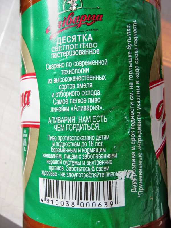 две интересные вещи: -применяемые ингредиенты указаны в коде сроке годности -пиво называется Алiварыя, на этикетке по-русски пишут Аливария, а пивзавод называется Оливария