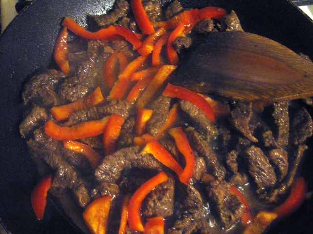 и добавил полоски жареной говядины с паприкой