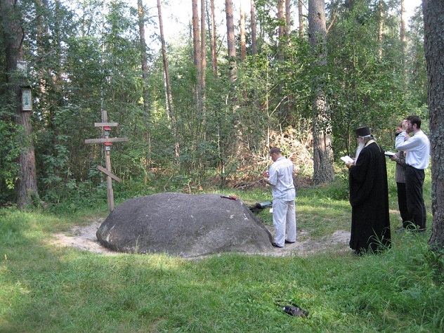 пр.Серафима Саровского (на границе с Мордовией). на камушках свела судьба с отцом Варнавой, где он с братией отслужил службу. Это ЧЕЛОВЕЧИЩЕ реально.(Игумен Варнава , ректор Свято-Зосимовской Высшей духовно-певческой школы, настоятель воинского храма во имя святого благоверного князя Даниила Московского,художественный руководитель солдатского хора Инженерных войск «За Веру и Отечество»). Подвез их обратно до скита (там 6-8км лесом), правда все они в салон не влезли - трое ехали в кузове на крышке и пели. Братцы - как они поют благодатно - не передать. С Ув.