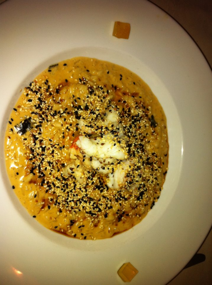 Не спорю по инградиентам - хотя и есть странности.... Вот я несколько дней назад на Санторини в самом лучшем на острове ресторане ел ризотто - просто отрыв башки. Мясо скампий с трюфельным маслом и кунжутом и сезамом... Но самое прикольное - по краям - два кубика желе из торфяного островного виски.... Пришлось через день еще раз прийти и поесть там же....