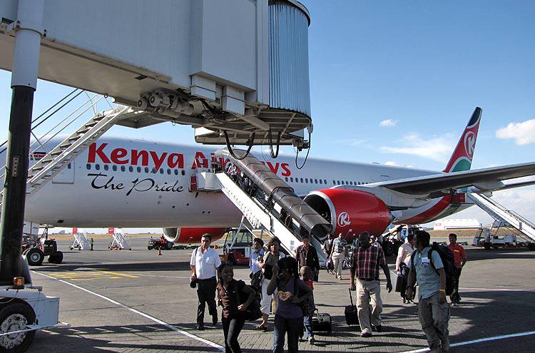 В Найроби по-прежнему не подкатывают телетрапы к самолёту, а выгружают пассажиров на землю, проводят к телетрапу и просят подняться по технической лесенке?