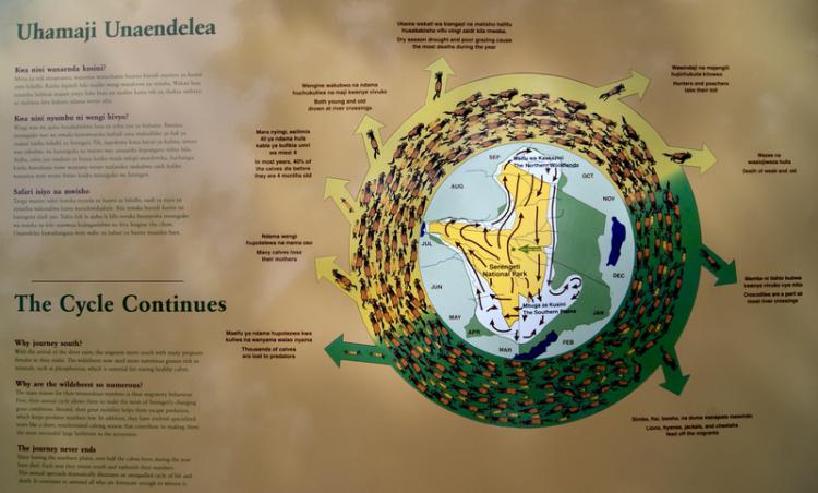 На какие даты? Сейчас Великая Миграция протекает на самом юге Серенгети, который естественно в Танзании (см. схему)