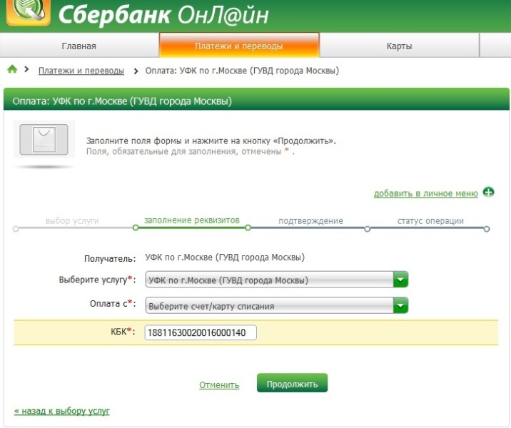 Если ввести КБК, как указано, то выходит новое менюшка, куда надо вносить остальные реквизиты и еще кучу информации, которая никак не связана с оплатой штрафа.