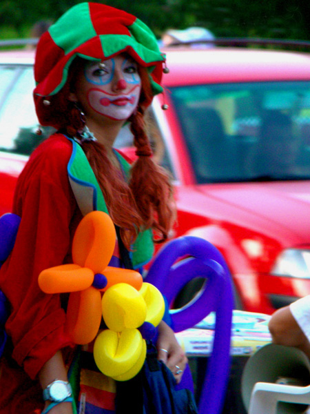 Так вот, у нас был большой заказ- развлекать массу капризных детей с рублевки. По этому поводу мы вызвали пианистку из Гнесинки (у заказчиков было шикарное белое фортепьяно на первом этаже). Условие было одно - чтобы она нарядилась во что-то смешное. Вероника – пианистка надела смешные ушки и начала играть детские песни, представляя на что потратит будущие деньги.. Я , как клоунесса, начала играть с детьми, забавляясь с ними от всей души. Я люблю детей, я их понимаю, они меня любят, и я их тоже люблю. Я хороший клоун. Я добрый клоун. Я отличный клоун. Я искренний клоун. Я детский клоун.Я состою в корпорации клоунов. К тому же я еще и шут. Шут от клоуна отличается тем, что шут работает круглосуточно, а клоун тарифно.