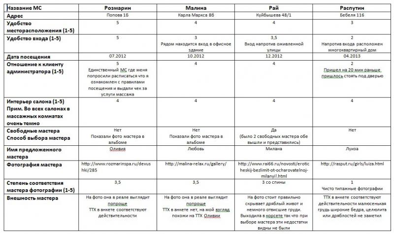 Дело было вечером-делать было нечего. Вот и решил составить сводную таблицу по всем МС которые я успел посетить.(Если подскажите как прикрепить вордовский фаил или вставить таблицу буду благодарен)