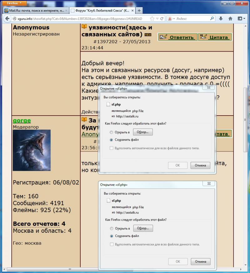 при открытии некоторых конф, или веток в них выскакивает сообщение с предложением открыть некий файл sf.php. Появилось после установки Касперского. Что это?