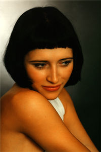При встрече - маленькая и худенькая, красивое лицо, черные крашеные волосы. По лицу и фигурке (в пальто) дал бы лет 15-16. После снятия пальто добавил бы года 2 - до 17-18, но не больше. Грудь первая, красивой формы, очень приятной упругости - не тугой, а такой мягкой упругости (во дал!). Жира нет, но кости нигде не выпирают, не ударишься. Киска выбрита.