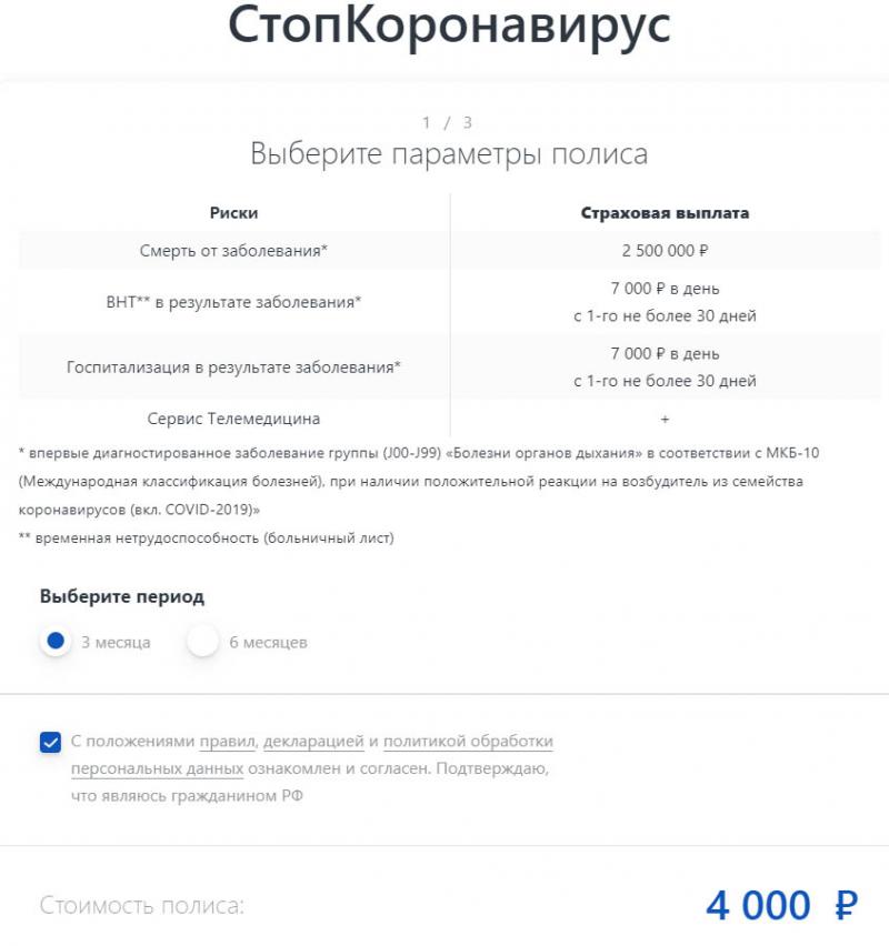 -По полису «Коронавирус.НЕТ» осуществляется страхование по риску