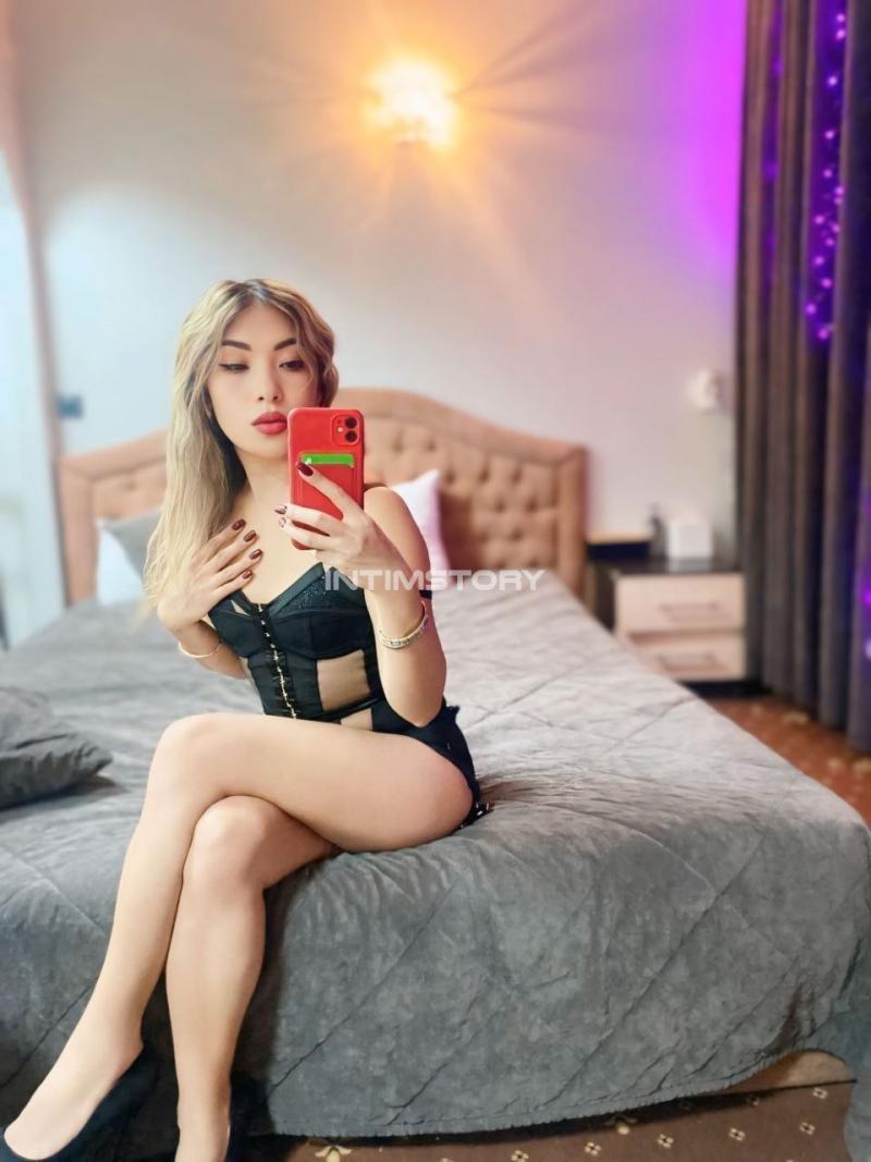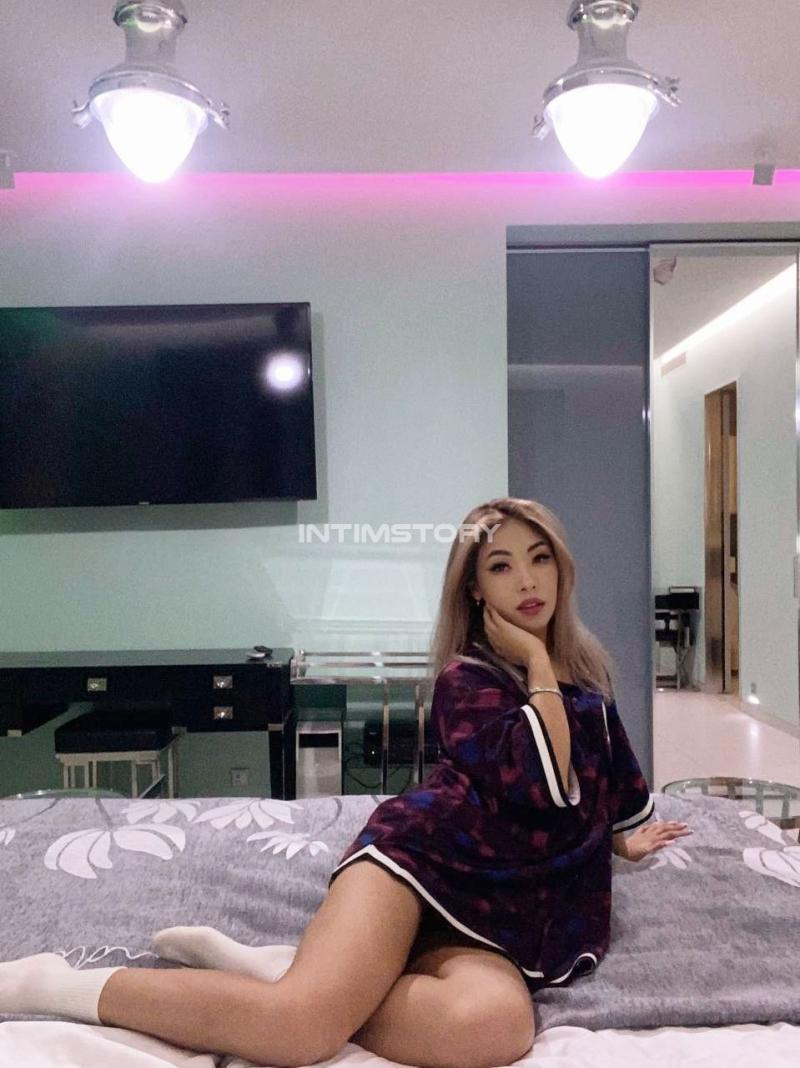 ТТХ. Всё как на фото. Лицо очень симпатичное, восточное, выглядит моложе заявленного возраста, максимум на 25, имхо. Глаза карие, с большими нарощенными ресницами. Губы большие и красивые, думал подкаченные, но сказала: "у меня всё натуральное".. Волосы прямые, светлые с мелированием (сказала, что недавно сделала), ниже плеч (свои чёрные). Рост 160, вес сейчас 47кг, сказала, что "за неделю работы в салоне похудела на 2кг". Взвешивалась. Грудь очень маленькая - 0,5 как у девочки подростка, с торчащими маленькими сосками (чувствительные к ласке). Фигура изящная и тонкая - модельная, пропорциональная и достаточно выраженная, на вскидку параметры: 60-88. Животик плоский как струна (не спрашивал, но думаю нерожавшая). Пирсинга, тутух, шрамов и растяжек - нет. Кожа гладкая и душистая. Попа круглая и упругая. Ноги стройные и красивые. В общем куй на неё (как говорится) встал с порога.. Мой формат. По-русски говорит как мАсквичка.