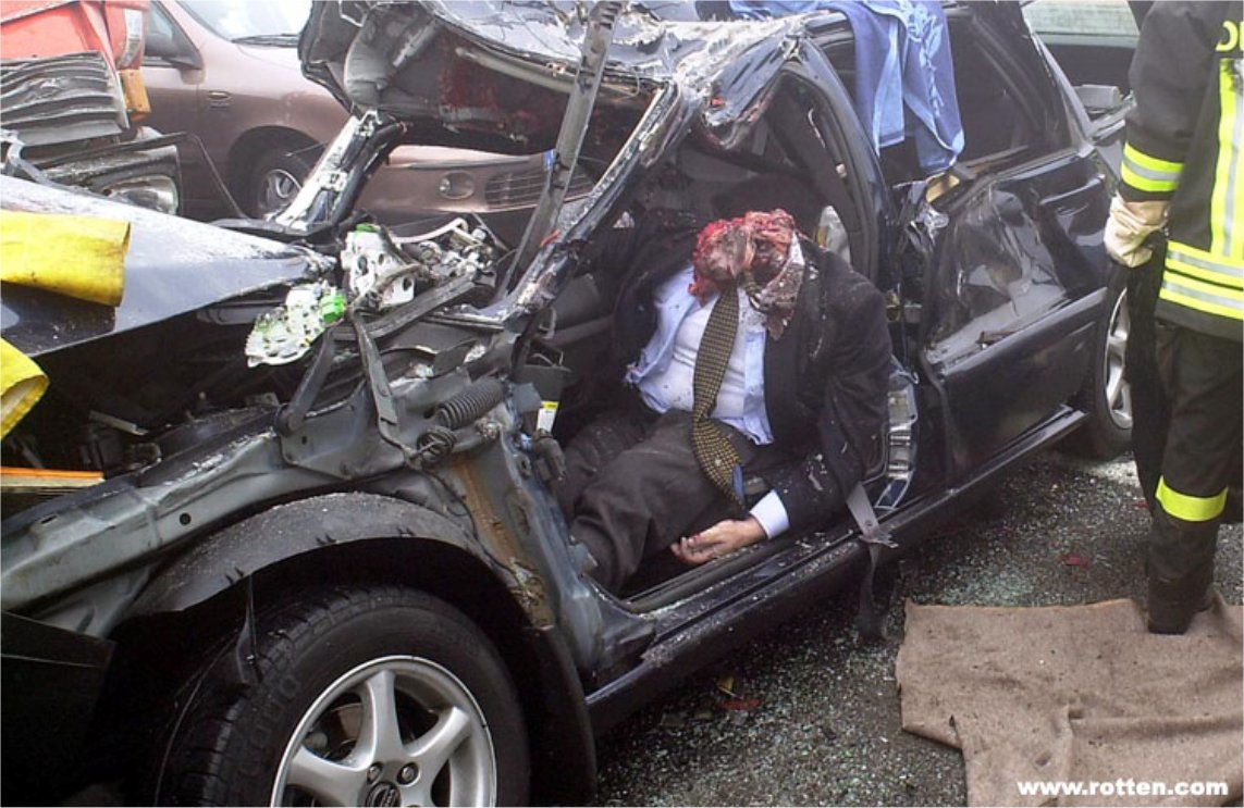Рвет их на части даже на наших дорогах - банально, об фонарные столбы... При том, что аварии не обязательно заканчиваются гибелью пассажиров - посмотрите: передок, как кокпит боллида Ф-1, целехонек. Остается только пристегнуться ремнями