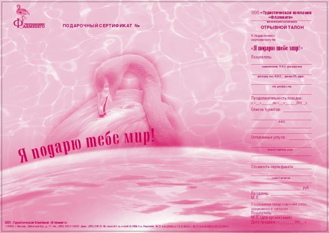 Новая услуга ТК "Фламинго" - подарочный сертификат "Я ПОДАРЮ ТЕБЕ МИР".