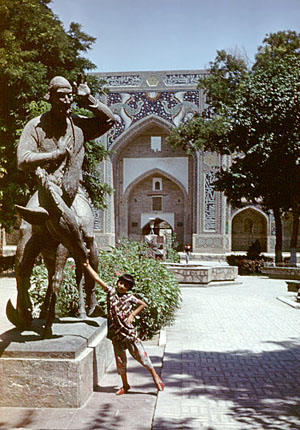 Бухара: памятник Ходже Насреддину и медресе Нодир-Диван-беги (XVII в.)