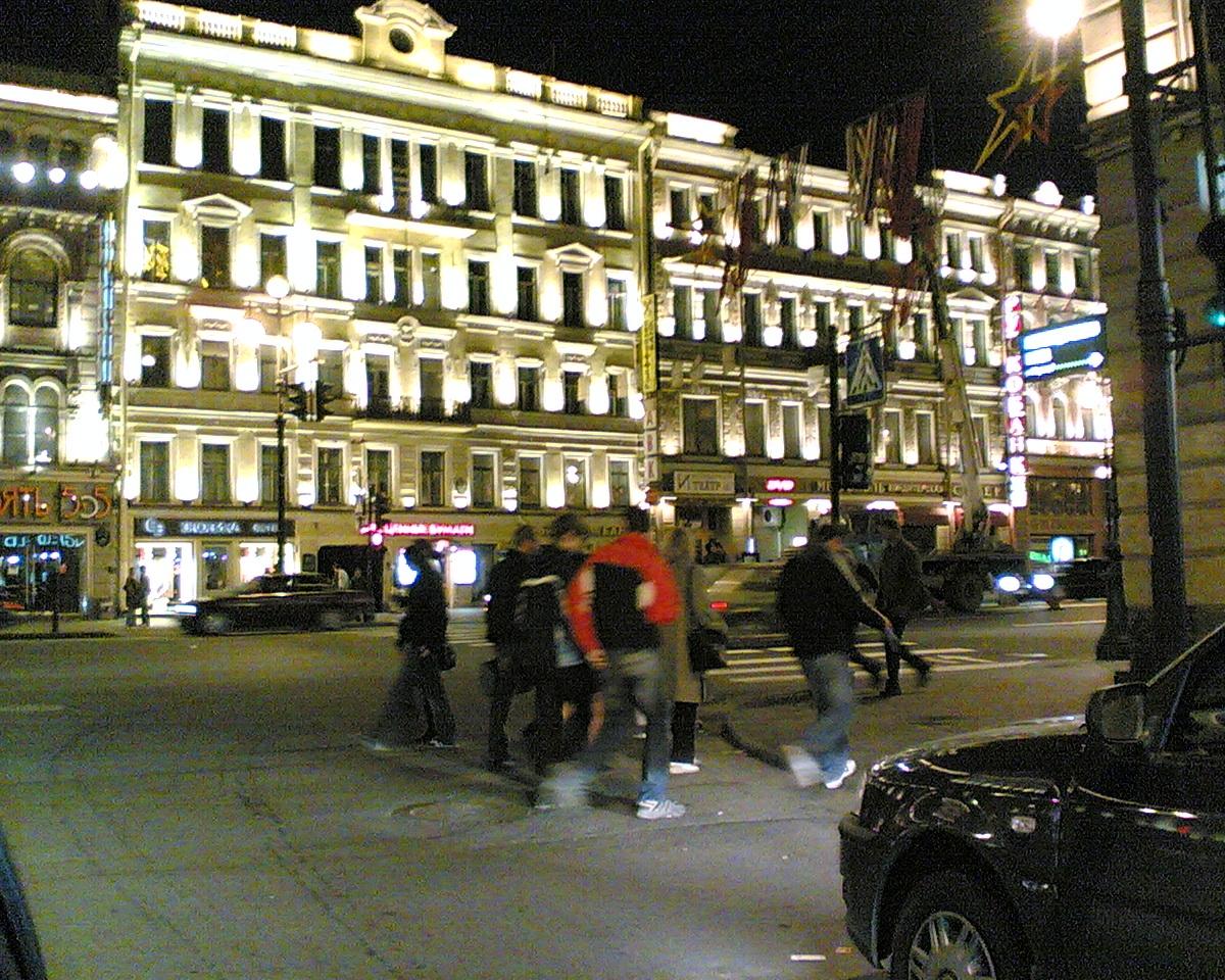 В Питере остановились в гостинице Москва, до которой с удовольствием дошли пешком за десять минут от Московского вокзала, попутно наслаждаясь вечерним городом. Пройдя регистрацию, с трудом пробившись сквозь толпы немецко-скандинавских туристов, я, естественно, начал оглядываться вокруг в поисках продажных женщин. Искать долго не пришлось: они сидели в креслах недалеко от лифта. Поскольку мне нужно было сначала отнести вещи в номер, переодеться и поужинать, я ограничился кратким приветствием в виде подмигивания .