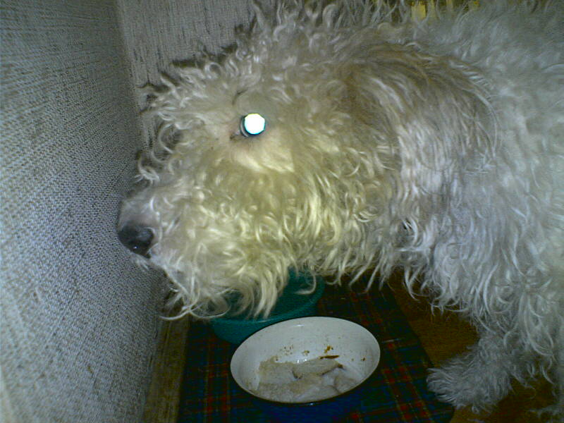 1) при чем тут собачка? :-О ну хоть пояснили бы - например "любимая ее псинка" или "чуть не сожрала мои ботинки"...