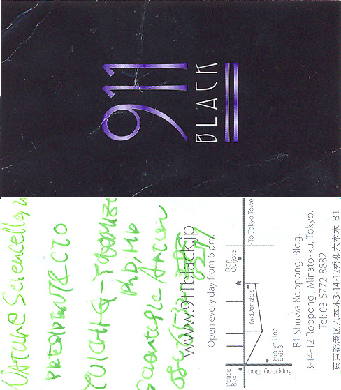 Основное, бросающееся в глаза отличие – эротической японскую «девятку» делают не танцовщицы, а сами посетители. Атмосфера пропитана сексом благодаря откровенно танцующим посетителям, которые, тесно прижавшись друг к другу, окидывали страстными похотливыми взглядами всех мимо проходящих. Стриптиз программы, как сказал официант, здесь нет. Play-лист состоит из мировых хитов, что весьма порадовало. Столики грязные, места мало – клуб небольшой. Ощущение диско-клуба, где все друг-друга снимают, причем достаточно открыто. Заметила одиноких, очень милых, разукрашенных и разряженных японочек (симпатичную японку встретить в Японии очень трудно), откровенно флиртующих с гостями. Два аниматора (один англичанин, другой афро-американец) развлекали брейк-дансом публику. В целом было очень экзотично (для меня, во всяком случае). Неплохо развлеклись, и потанцевали. Но, конечно же, это была не наша любимая «девятка». Сочетание цифр «911» достаточно распространено - служба спасения работает во всем мире. И даже в Японии эти магические цифры хоть как-то спасли нас от скуки и уныния.