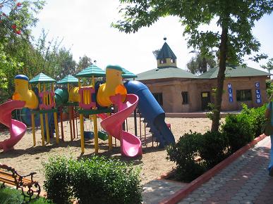 По каким-то непонятным причинам не сохранились фотографии об этом отеле. Но по большому счету в этом нет ничего страшного, т.к. на сегодняшний день этот отель выглядит немножечо лучше нежели в каталогах. На стене первого корпуса теперь есть большое пано с подсветкой (не помним что на нем изображено), вдоль дорожки к пляжу высажены пальмы (вечером тоже освещаются симпатишно). Айдынбей Голд - очень и очень скромная пятерочка. Малюсенькая территория. Малюсенькие горочки две. Малюсенький зал для вечерних программ. Минусы: Здание состоит из двух корпусов, которые соединены между собой переходом. Стоит торцом к дороге. Вид на море условный, то бишь боковой. С одной стороны окна выходят на пустырь и за ним то ли подобные отели, то ли общежития, с доугой еще одна дорога и еще один пустырь (с экскаватором). Аккустика в здании еще та. В ту ночь, когда мы имели честь там остановиться, кому-то приспичило активненько заняться любовью - слушали и слышали все Кстати, первое желание когда мы заселялись в отель и шли к своим номерам по балконам-коридорам, жуть как хотелось крикнуть как в старых фильмах:"Люуууусь, а Люуууусь, мой сифилитик у тебяАААА?" Между собой мы этот отель назвали птичий базар Но как ни странно нам было самим, отель мы полюбили всей манагерской любовью за его плюсы. Плюсы. Отношение персонала к гостям (уж поверьте, было с чем сравнивать) очень доброжелательное. Аниматоры вечернего шоу - один толи итальянец, толи еще какой брюнявый нифига не понимающий русский язык и две симпапули из Москвы Ася и Юля, очень стараются своей работой загладить эффект маленького и темного помещения и у них это хорошо получается. Т.к. вечером откровенно делать нечего отель располагает к активному знакомству и активному общению. Мы перезнакомились со всеми русскими и со всеми немцами, проживающими в отеле и общение было очень приятным. Продавцы в отельном шопингцентре совершено не навязчивые и цены у них весьма и весьма приятные на товары. До Центра Алании можно доехать на маршрутке за 1 доллар. Чистый и даже зелененький пляж. Бар на пляже. Вопщем люди работающие в этом отеле очень стараются угодить.