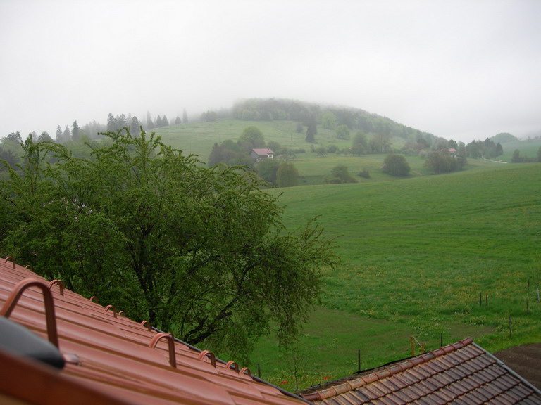 Несколько раньше, в славной деревне Rebeuvelier (недалеко от Базеля, там тоже ничотакие горы, но существенно пониже, без снега - см. фото) милая семейная пара сдала нам на прожитие 2-й этаж своего домега размером метров так в 150 (!!!!!) по цене 20 евро с рыла кэшем койка+завтрак... чрезвычайно гуманно даже по нимецким ценам, не говоря уж о швейцарских... короче: