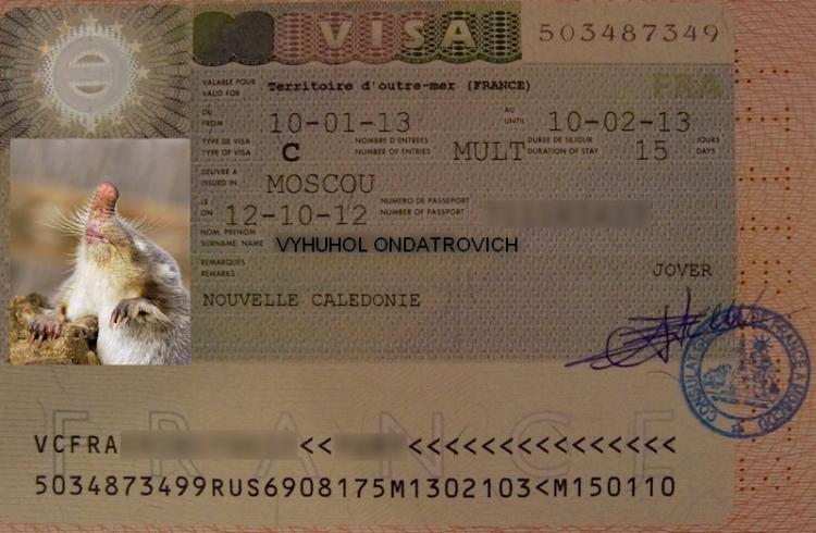 Вроде как все на месте – типичная европейская виза с областью действия «Territoires d'Outre-Mer». При более детальном рассмотрении смущала лишь надпись «Nouvelle Сaledonie» в поле примечаний. То ли она указывает, что виза действительна не только на всех TOM, но и в Новой Каледонии в частности (тем более что в Нумеа – столице Новой Каледонии расположена крупная французская военно-морская база), то ли…  Запрос к Яндексу «Как выглядит виза Французской Полинезии?» дал исчерпывающий ответ: «область действия визы указывается на ней в поле Примечания». То есть лягушатники дали нам визу ТОЛЬКО в Новую Каледонию! К счастью, жена пошла забирать паспорт позже, и в процессе по моей просьбе задала вопрос «А что же за визу вы нам дали?». Как и ожидалось, получила ответ «Визу Новой Каледонии!». На вопрос «А где виза Французской Полинезии???» девушка за стойкой сперва понесла чушь о том, что виза Полинезии стоит 35 евро, потом – что мы и не просили визу Полинезии, еще позже – что виза Полинезии дается всегда отдельно от визы Новой Каледонии… наконец, сломалась и признала, что в консульстве спороли косяк. Посему – надо прийти еще раз с паспортами, естественно не заполняя никаких анкет и не предоставляя документов, и получить дополнительно визу Французской Полинезии.