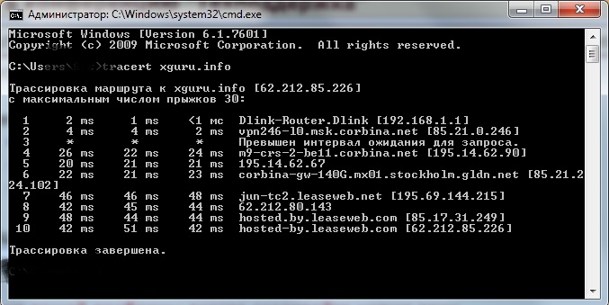 команда tracert