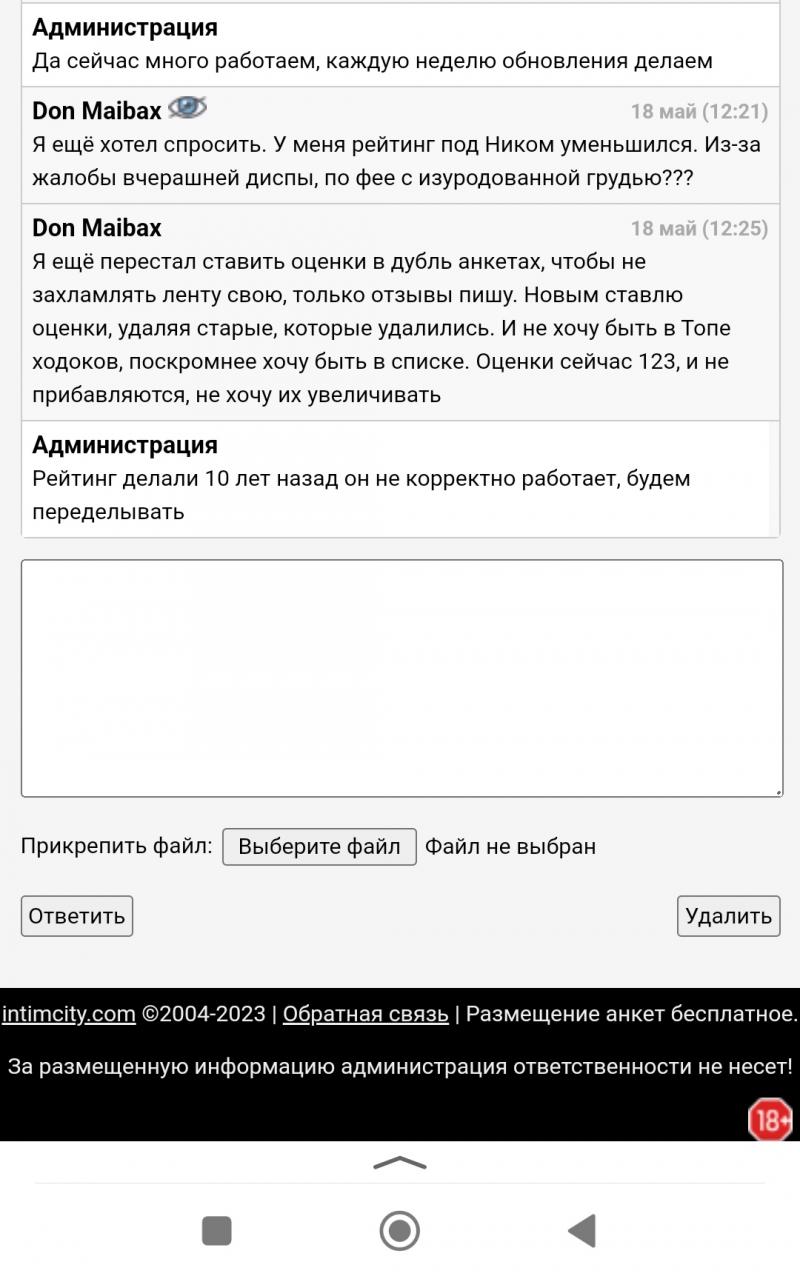 Всем хай! Мика, я не "любимчик" у Админов ком. Поверь. Просто в начале нашли общий язык, как с.nl припер в Ком, подсказывал, как улучшить сайт, ...завтра кстати появится опция "окончание на лицо" и скоро можно будет переносить оценки, как в .nl, со старых анкет вбивая номер прошлой, админы написали. Меня вчера чуть не забанили, одна мразь дисп жалобу накатала, что я её фею с испорченными сиськами троллю и лишаю работы. Разборы были. Переписка с админами была жёсткая ночью, объяснял ситуацию. И рейтинг уменьшился мой, под шкалой. Так шо, не так всё збс). Мика ты сам скольким шлюхам жизнь испортил???))), напомнить???. Любимчик у Кома Крымчанин, Ростов, Док и др, кто не портит анкеты и пишет ваниль всем. Они удобны, не токсичны, и не создают проблем. Я же "бунтарь", но меня пока терпят, с этим согласен. Уж какой есть... Этой писде пришлось убирать оценку и отзыв в двух новых анкетах, а убил ранее несколько, за наеп по сиськам Донов. Бесит меня мразь, слил тогда бабки и её сиськи до сих пор в памяти, самые стремные, что видел. И щас 18 к, охуевшая, был за 6 к и то овер прайс, бесплатно бы не выеп: https://u.intimcity.com/indi/anketa656893.htm Отзыв.. "С удалённой анкеты: Был давно в Люберах за 6 к. У фифы сделанная грудь , видимо хирург был не пластический ,а простой мясник - коновал , что повлияло на качество и эстетический вид этой прекрасной части женского тела... Грудь как жёсткие мячи, очень сильно натянута, с огромными ореолами сосков, со скакан размером, от которых идут растяжки вдобавок. Есть заметные , грубые и широкие шрамы снизу груди , уродующие грудь вдоль и поперёк. Для Донов , которым важна визуальная эстетическая красота груди , могу дать совет : Не снимайте Лифон , особо впечатлительные могут словить вялого, как и я тогда(((. В Коме , ценник подрос аж в 3 раза😳, а изменился ли эстетический вид? . , режущий глаз и портящий впечатление - груди со шрамами. -Думаю , что нет((((( Вроде на нас и бабла поднимает не хило и на приличном опыте , и даже по Забугорью эскортила интенсивно , а уродство исправлять не хочет , видимо считает и так проглотят , да и когда бабки уплОчены , куда денутся , и так сойдёт , до этого же сиськи не видны...Вывод какой!? Ценник растёт ,а на ходоков пох.. Сиськи всё те же и шрамы на месте))))) Это и обидно и огорчает , что качество не соответствует стоимости , меркантильность и алчность рулят. Мы лишь источник их благосостояния , а на остальное им наплевать. Накипело! С ув...." С ув...Don Maibax