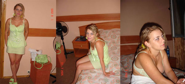 Приехав в гостиницу, в которой остановился Фар, мы поднялись в его номер. Надо отметить, что никто нас с девушкой не останавливал и ни о чём не спрашивал. Оказавшись в номере мы дружно перекурили наше знакомство – фея чувствовала себя явно неуютно и всё чего-то опасалась, не смотря на нашу с Фаром весёлость и откровенное дружелюбие. И, поскольку мы ни на минуту не забывали о будущих отчётах на нашем Форуме и обсуждали детали ещё во время кастинга, решили «брать фею пока тёпленькая», т.е. пока не освоилась и не осмелела. В смысле зверски КСить её прямо с порога никто и не думал, а вот уломать Вику сфотографироваться нам удалось довольно легко. В её обречённо-испуганном взгляде читалось: «Это вы пока трезвые такие ласковые и фотки «на память» делаете, а как нажрётесь начнёте пИzдить и всякими гнусностями заставлять заниматься… Ну да ладно фоткайте, ипите, но только не бейте…» Забегая вперёд, скажу, что так до самого утра нам с Фаром и не удалось «разморозить» эту «Снежную Королеву», хотя старались мы изо всех сил - разве что хороводы вокруг неё не водили, а она так и осталась такой же настороженной в вечном ожидании самого худшего. Вообще зашуганность девушки произвела на нас крайне удручающее впечатление. Тем более что у нас обоих раньше практически не было опыта общения с уличными феями. Радует лишь то, что нам легко удалось заполучить фотографии этой девушки для наших будущих отчётов. Первые две фотки феи мы сделали ещё до начала «порцесса», а третья фотка была сделана уже в разгар вечера во время совместного распития спиртных напитков.