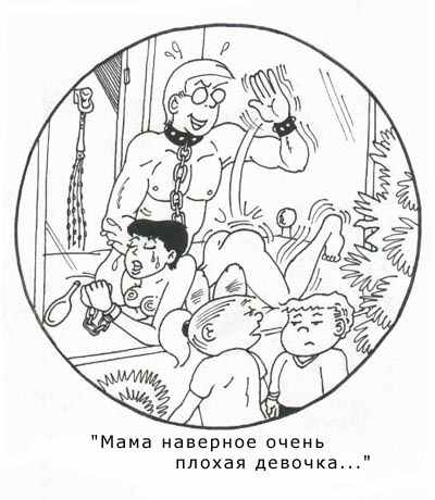 Действительно, кому что нравится - лишь бы в радость и не против воли другого чела. На том сайте раньше не бывал, но подобное членовредительство видел, даже на ТВ была как-то передача посвящена "не таким", а ведь когда-то не менее бурную реакцию вызывали длинные волосы хиппи... Прошлым летом в одном бутике на Тверской видел посетительницу - даму с маленькой девочкой (по видимому - дочкой). На даме был небольшой топ, открывающий спереди пупок с пирсингом (этим сейчас, конечно, никого не удивишь), а сзади - соответственно нижнюю половину спины. Так вот эта часть её тела, снизу также предельно открытая джинсами "на бёдрах", была исперещена поперечными узкими шрамами, как от порки, которые резко контрастировали на фоне смуглого морского загара. Выглядела важно, как и полагается солидной даме, "не замечая" устремлённых взглядов на её филейную часть. Да и дочка её тоже не обращала внимание ни на эту спину, ни на интерес окружающих к ней. Близко с такими людьми не общался, насчёт дистанции - полностью солидарен с Вами.