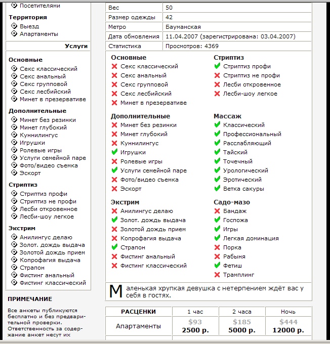 . * * А чо та в анкетах у нее ни епля ни минет не заявлены+  garic99    27/04/2007 18:45:25