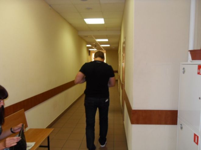 Была на предыдущем, в зал не пошла « писала выше насмотрелось такого, на обвиняемую жалко стыдно смотреть, мне стыдно, операм нет». Сидела в коридоре. Пришли двое из двадцать шестого, принимавшие участие в выбивании показаний, у одного, того который был в отпуске и ужасно опаздывал на пьянку, фамилия вроде Новиков, на майке –я из 02- было написано. Видимо он всегда так на суды ходит ходит. Эх, тоже с радостью нацепила майку легализации проституции – да; коррупции – нет, но побоялась что это повредит обвиняемой. Среднего роста и телосложения, волосы русые, бородка видимо на время отпуска, ничего приметного, мышь серая, сложно описать. Губы тонкие, нос небольшой. Он на прикрепленном ФОТО – со спины – снимать нам не разрешили. Второй, Журавлев вроде фамилия, могу ошибиться, неброско одетый – светлые рубашка и брюки, цвет кожи как у киргиза, чуть светлее, густые черные заросшие брови, черные волосы стрижка, тоже какой то невыдающийся не могу нос и губы описать! Глаза карие, правый немного косит. Я его в коридоре подловила. Сначала когда увидела их первый раз сердце забилось, вспотели ладони, пересохло во рту и стало нечем дышать; где то секунд двадцать тридцать. Потом все пришло в норму. Что это было – испуг, страх, злоба, ненависть? Не знаю. Так вот второго с черными волосами удалось подловить когда он из суда выходил. Снял темные очки. Я представилась фотокорреспондентом,снимать не разрешили, вот и сижу здесь, поговорили. Ни о чем. Клуб 911 закупки. А, обвиняемая оказывается миллионерша у нас, ее подруга тоже, блин, точно чей бентли у суда стоял…… Вообщем то что обычно они по телевизору говорят. В глаза смотрела, пыталась что-то увидеть, ничего. Никакого страха, симптомов больше не испытала – только омерзенье отвращенье. Не исключено что теперь звездной болезнью заболею – встретиться со своими идеологическими врагами и запросто пообщается Для меня это много значит.