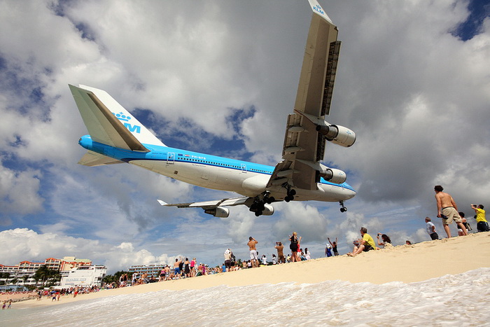 На Пхукете есть такой пляж, Май Као, над ним самолеты заходят на посадку. И кстати, малолюдный. Ну а самый знаменитый в таком духе, кажется на карибском острове Сен-Мартен, но там народу много.