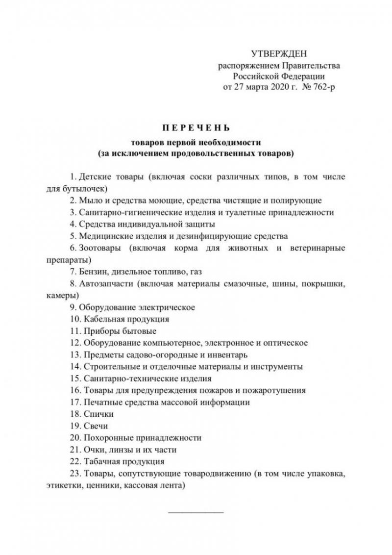 Re: Перечень непродовольственных товаров первой необходимости на период карантина.