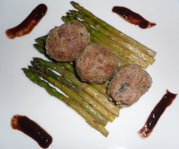 Спаржу и бифштексики раскладываем по тарелке, как подскажет фантазия. Если она подскажет очень хорошо - есть риск, что любимой, для которой, собственно, все это и делается, померещится изменница, которая все это и приготовила, потому что ожидать кулинарного шедевра от мужика, ясень пень, не приходится. То есть, поначалу не увлекайтесь с сервировкой, делая акцент на вкусовых качествах блюда .