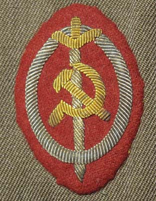 НАРУКАВНЫЙ ЗНАК НАЧАЛЬСТВУЮЩЕГО СОСТАВА ГЛАВНОГО УПРАВЛЕНИЯ ГОСУДАРСТВЕННОЙ БЕЗОПАСНОСТИ НКВД СССР Введен приказом Народного Комиссара Внутренних Дел СССР № 383 (по ГУГБ) от 14 декабря 1935 года. Знак представляет собой вышитый на краповом сукне овал с мечом, серпом и молотом в центре. От майора госбезопасности и выше — овал золотистого цвета, меч, серп и молот — серебристого. От капитана госбезопасности до сержанта госбезопасности включительно — овал и клинок меча — серебристого цвета, эфес меча, серп и молот — золотистого цвета.