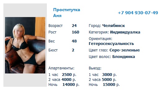 1. https://cheleba.org/girls/7167.html - тел 7 904 819-28-21 2. https://cheleba.org/girls/7166.html - тел 7 905 830-61-80