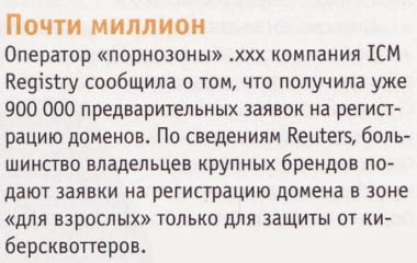 - представители индустрии для взрослых, желающие зарегистрировать доменное имя .ХХХ, сходное до степени смешения с принадлежащим им доменным именем второго или третьего уровня в других доменах верхнего уровня.