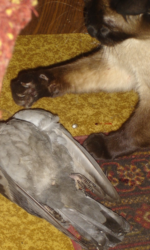 после того, как мой нежный котик(аттач) умудрился изловить одного голубя на девятом этаже без балкона и одного в этой квартире на балконе 4 этажа, я стала закрывать от него комнату. заодно и вещи стали чище, а то все было в его шерсти. так что синичка никак не могла от него пострадать. примета существует про голубя - если голубь постучал в окно, то будет покойник в доме. не знаю, работает ли это для синички... поскольку я живу одна, то скоро узнаем. на всякий случай: всем спасибо и пока.
