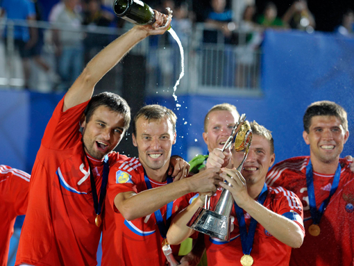 Сегодня, 26 ноября, в Дубае состоялся финал Межконтинентального кубка по пляжному футболу, в котором встречались две сильнейшие на данный момент сборные мира – Россия и Бразилия. Напомним, что именно эти две команды ранее играли между собой в финале чемпионата мира в Равенне и тогда подопечные Михаила Лихачева в ранге действующих чемпионов Евролиги одержала победу со счетом 12:8. На этот раз матч получился не менее упорным – по ходу встречи россиянам дважды пришлось отыгрываться, а в его концовке уже родоначальникам этого вида спорта удалось ликвидировать отставание в два мяча. Однако в итоге победу все-таки удалось вырвать нашим «пляжникам» - они выиграли в овертайме со счетом 5:4, благодаря голу Дмитрия Шишина, оформившего в этой игре хет-трик.