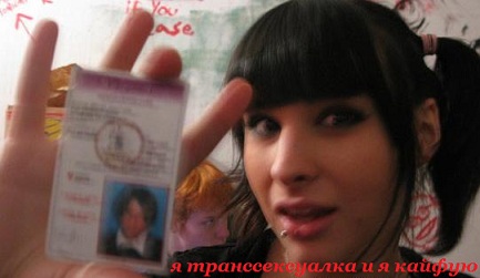 Вот эта транссексуалка тоже кайфует...постоянно в твиттере пишет..что факен-покуй, кто что скажет..я тётка с членом..и все кайфово..))0ыыыыы