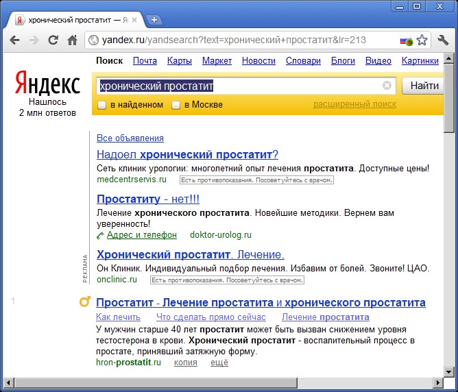 Это ссылка N1, которую выдаёт Яндекс на запрос "хронический простатит" (скриншот в аттаче).