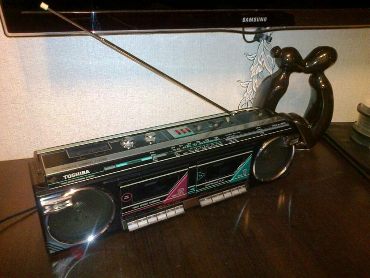 Вот, прикупил вчера Toshiba. Собрат был куплен в 87 в Берёзке в Астраханском переулке. Благополучно прошел со мной в качестве мафона для путешествий и многочисленные выезды на природу, и годы в общаге. Два года назад, во время большой перестройки на даче, когда снесли летнюю кухню, в суете сгинул, вместе со строителями. И вот, забирая вчера Соньку из ремонта, к великой радости увидел Тошибку, в отличном состоянии. В уме прикинул - максимум пятера - спросил и получил ответ: " Пять тысяч." Тут же поход к дорогой бляди был обменен на магнитофон.