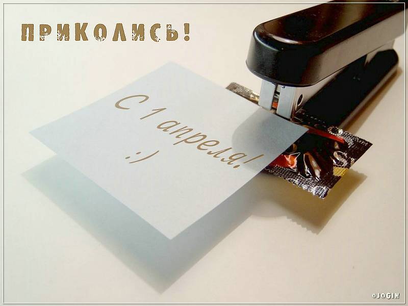 Там презерватив с бумажкой , на которой написано " С 1 апреля" и все это дело лежит в большом степлере......