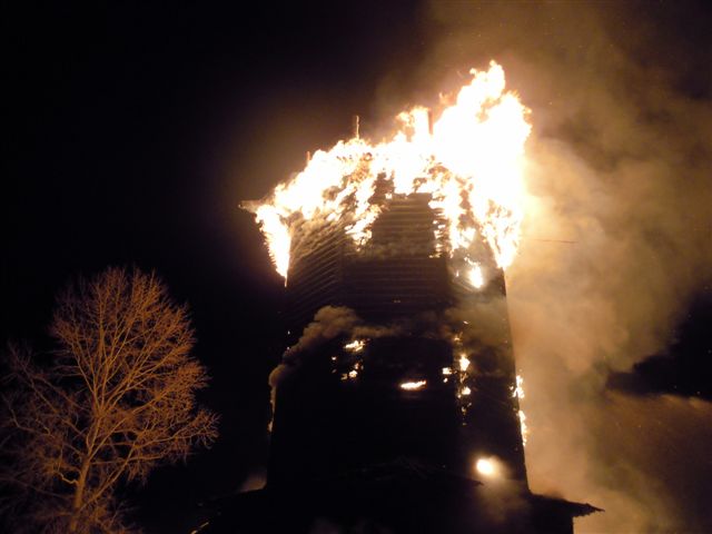 Никаких злонамеренных причин нету. Просто беда, стихия. Имеющимися средствами пожар было потушить невозможно. И любые усилия местных жителей-энтузиастов эти средства усилить и усовершенствовать в нынешних условиях были бы бесполезны. А в округе стоят шедевры ещё более беззащитные...