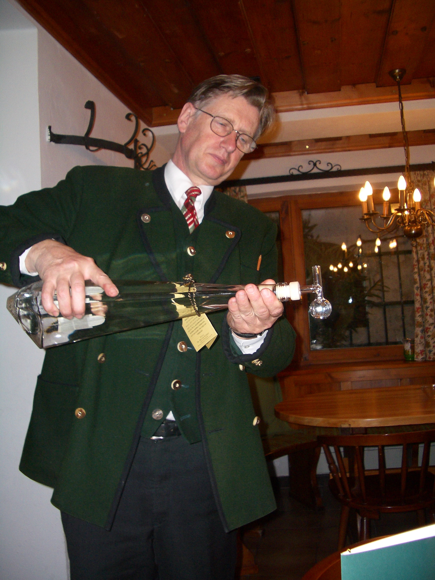 сам господин Шмидт наливает Вам дежистив - шнапс из собственного винограда со склонов Вены.