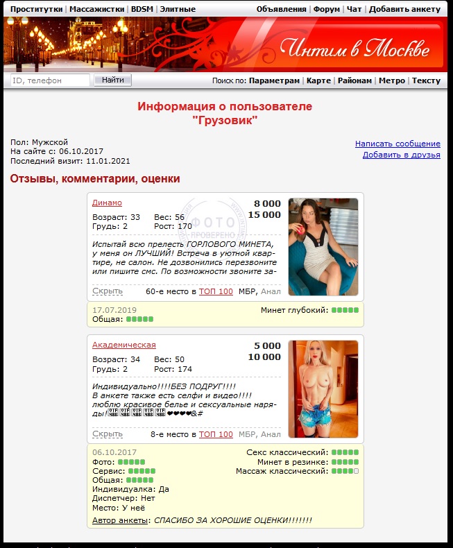 Это скриншот анкеты клиента, а вы посмотрите анкеты ФЕЙ. Там что-то я не вижу упоминаний "Грузовика". У меня тоже есть ник, у которого почти сотня отзывов, вот только в анкетах фей их нет.