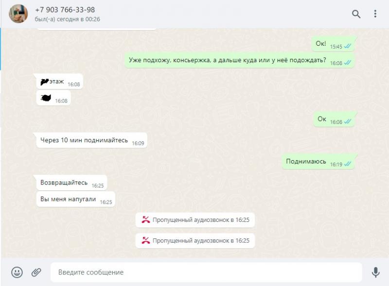 Созвон -трубку не берёт, а пишет что в вотсапе только. Набираю повторно -сбрасывает -ну и сиди дальше в своём вотсапе. Смотрю перезванивает -научилась телефоном пользоваться?? (вроде как сама) По разговору полное уныние, при прочих равных условиях и не стал бы продолжать, но тутбля интересно же
