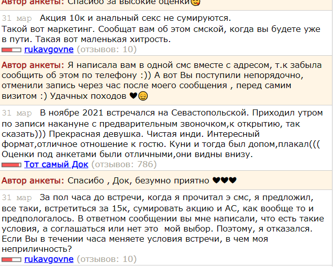 Причем в моем комментарии под ее анкетой, ни хамства , ни оскорблений. Проститутка сама написала в ответ , что забыла мне сказать. Хотя мы отдельно проговорили стоимость. и она по телефону все подтвердила. Ну раз забыла объяснить обслуживай как договорились. там цена вопроса была разница в 2000 рублей. А на сом им пох, забанили вообще не за что, просто потому что отзыв имеет негативный окрас. Если негативные отзывы и оценки подчищают , а писателей банят, то и в положительных отзывах и оценках смысла нет