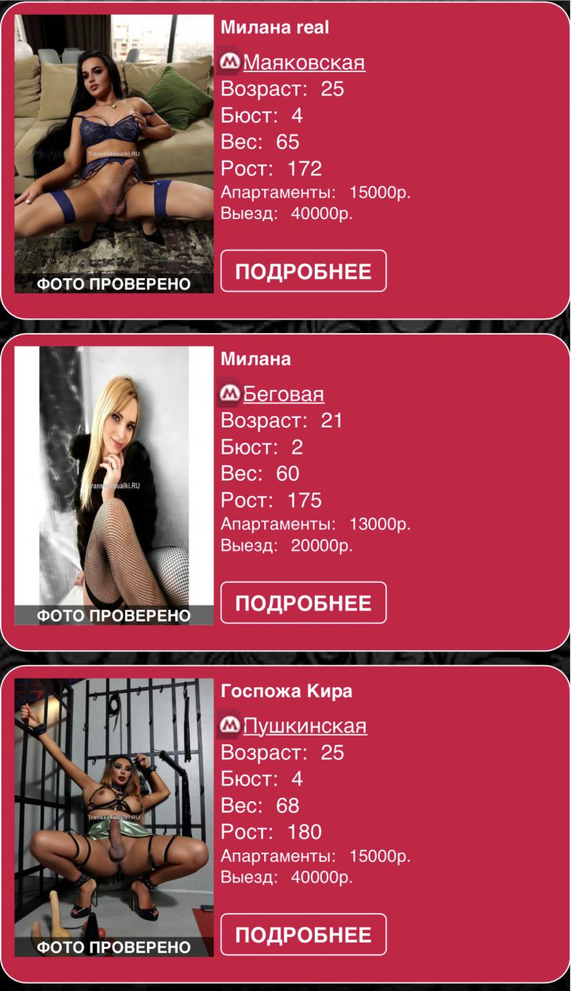 Только зарегистрировался ещё не умею правильно пользоваться отчет я позже напишу , был в районе белорусской позвонил первой попросила предоплату я скинул, человек взрослый узбек я ушел тут же набрал по локации , все тот же адрес и тот же голос короче развод чистой воды http://f.transseksualki.me/anketa/Milana-real-5222 http://f.transseksualki.me/anketa/Gospogha-Kira-4564
