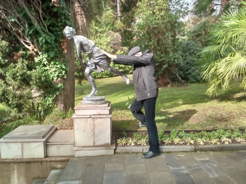 Первую неделю марта провёл в Сочи с 44-летней подругой. На Красное положил - нечего там смотреть. Дважды ездил в дендрарий и там домогался статУЙ. В жопу толкаю М., а за ногу цепляю Ж. Но это всего лишь Альц + Парк с их непрекращающейся эрекцией. Злые могут не смотреть.